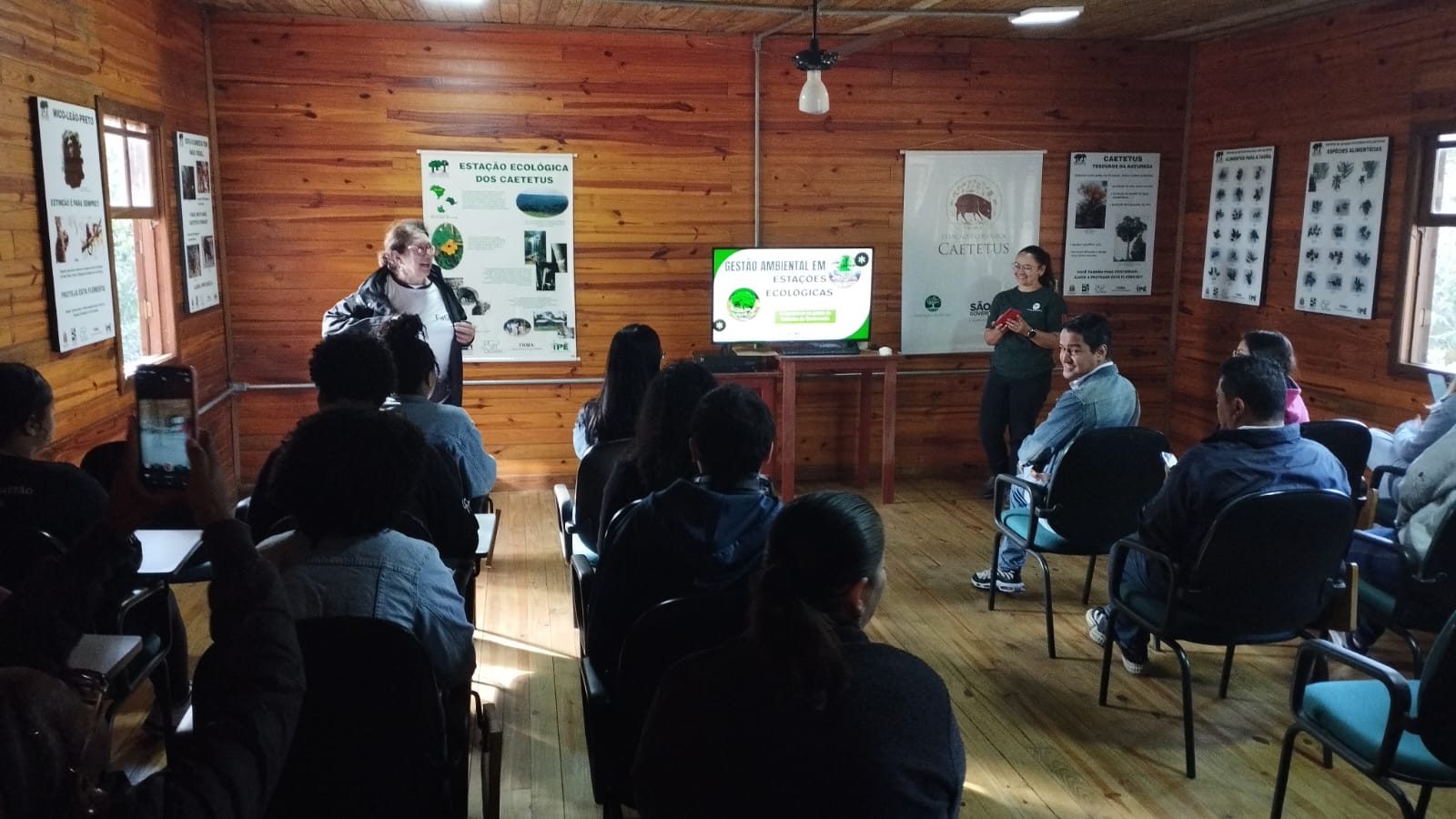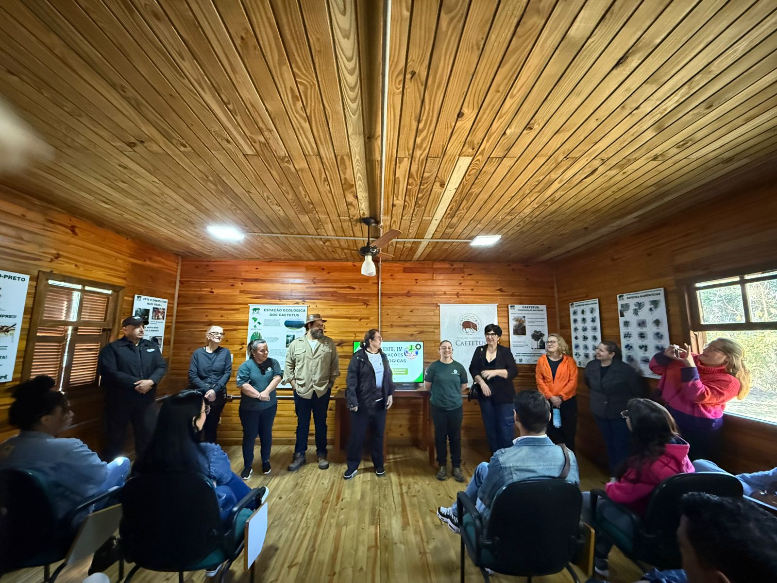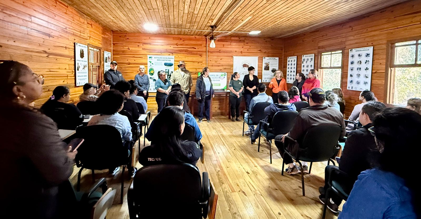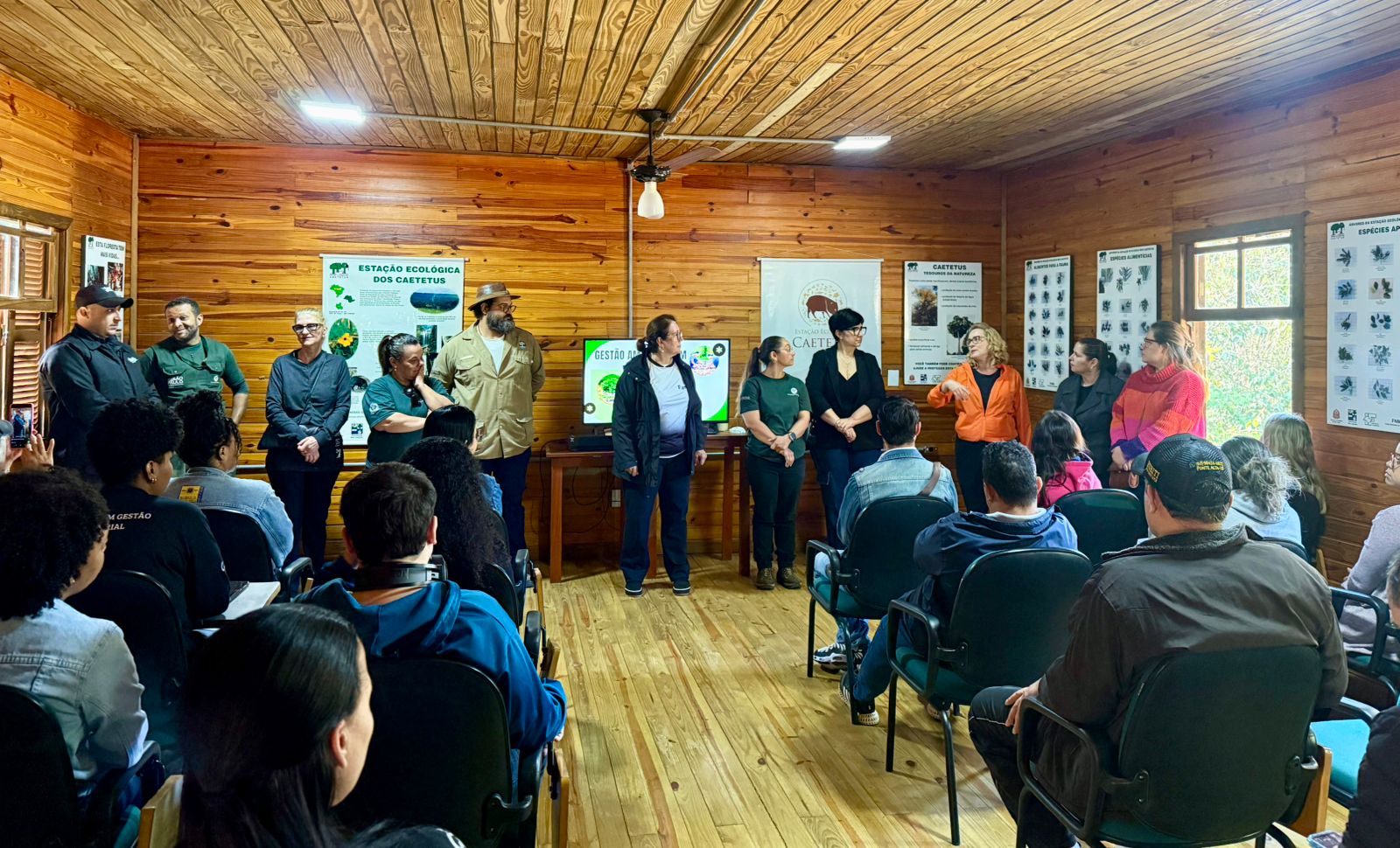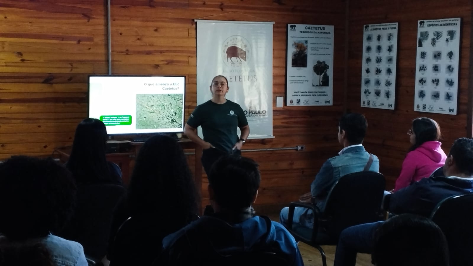 Assim, a visita foi guiada por Letícia, que iniciou a exposição contanto sobre a história do parque, mostrando o propósito e como o parque pode contribuir para a sociedade. Letícia também fez questão de aproximar a atuação do Parque Ecológico Caetetus à formação esperada para o alunado do Curso de Tecnologia em Gestão Empresarial, sugerindo que vínculos com a disciplina de Gestão Ambiental.