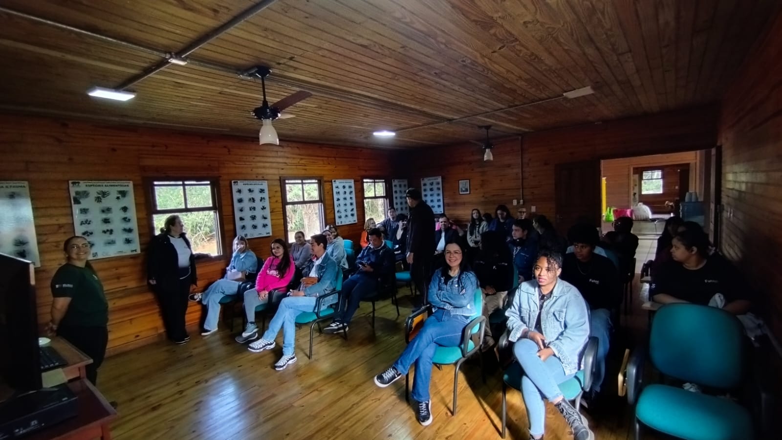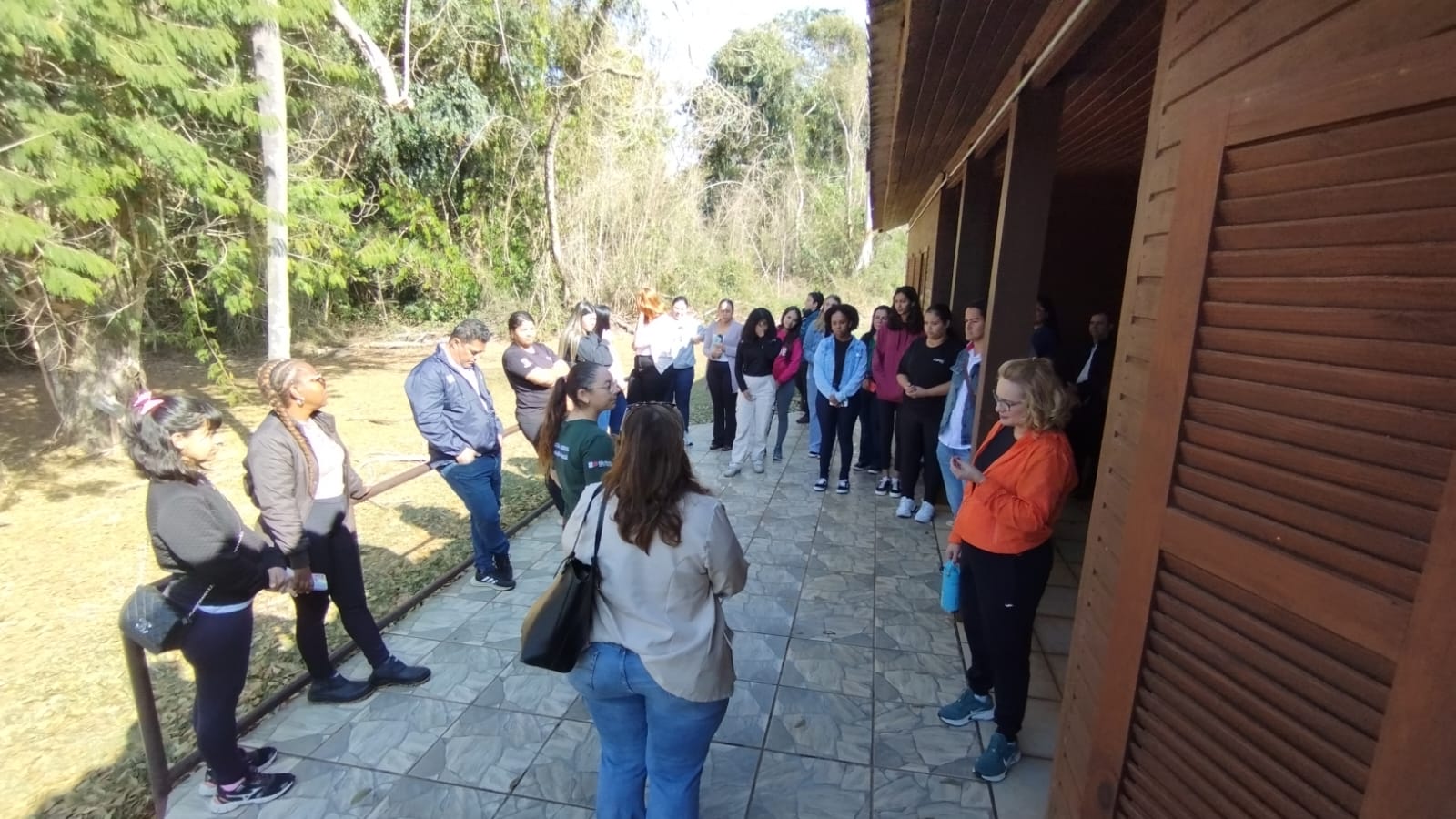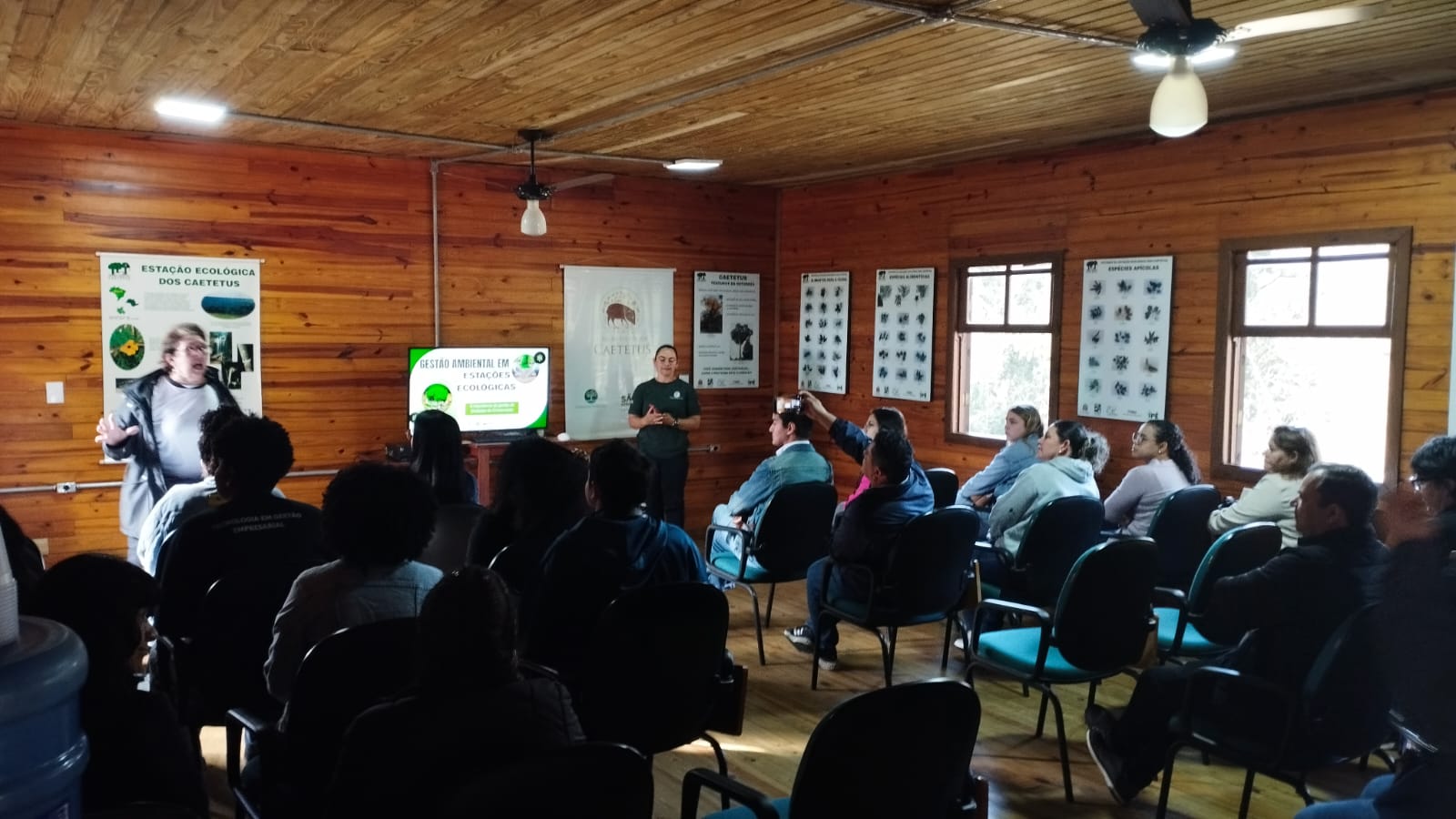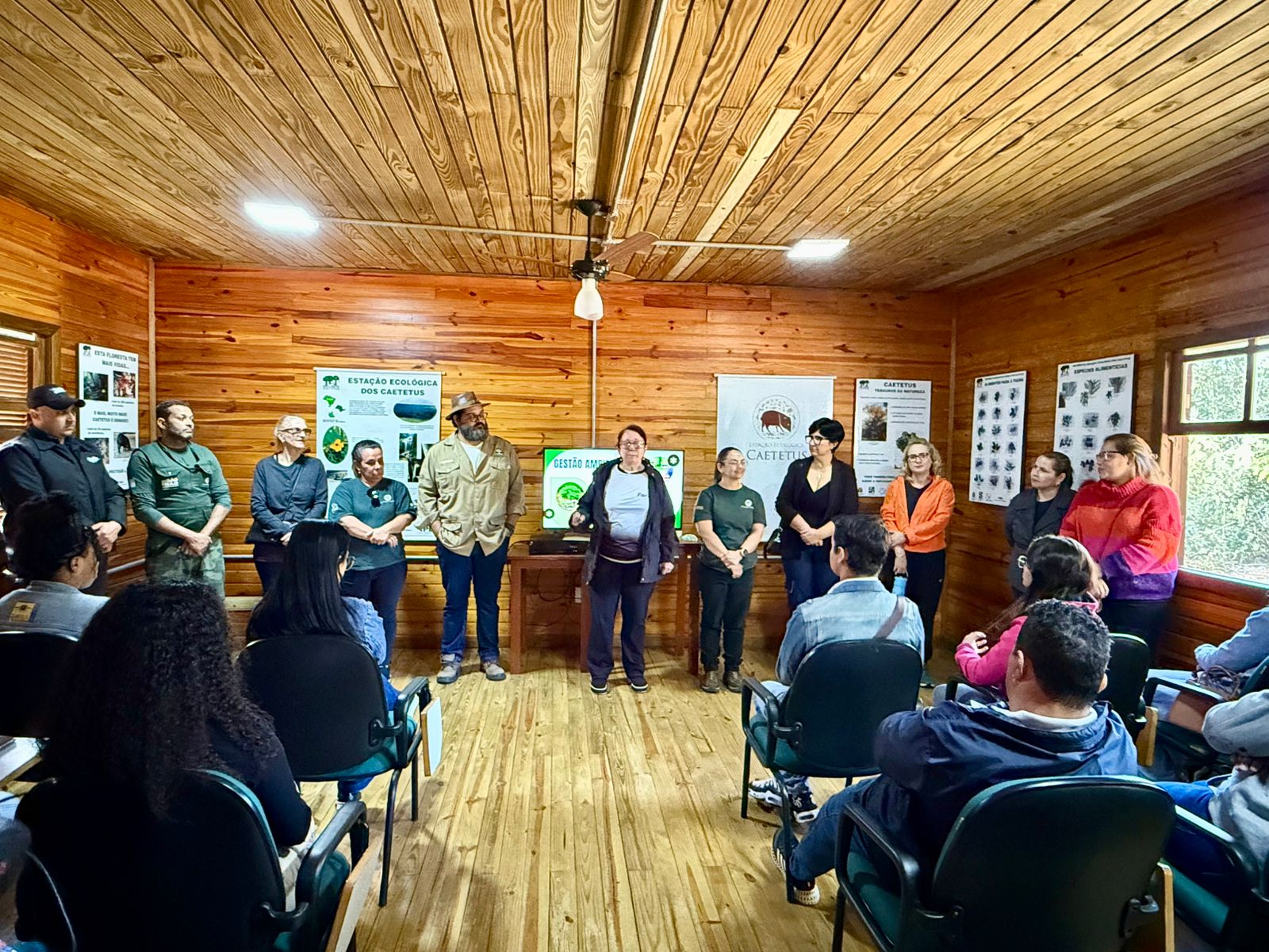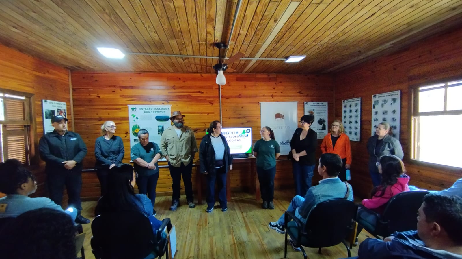 Assim, a visita foi guiada por Letícia, que iniciou a exposição contanto sobre a história do parque, mostrando o propósito e como o parque pode contribuir para a sociedade. Letícia também fez questão de aproximar a atuação do Parque Ecológico Caetetus à formação esperada para o alunado do Curso de Tecnologia em Gestão Empresarial, sugerindo que vínculos com a disciplina de Gestão Ambiental.