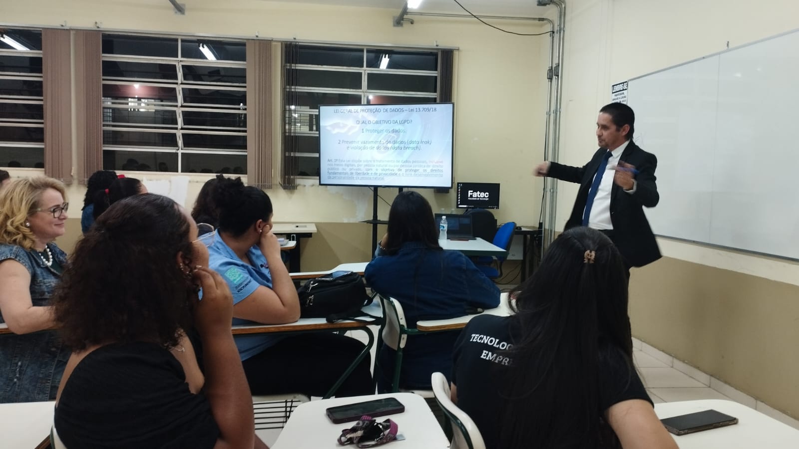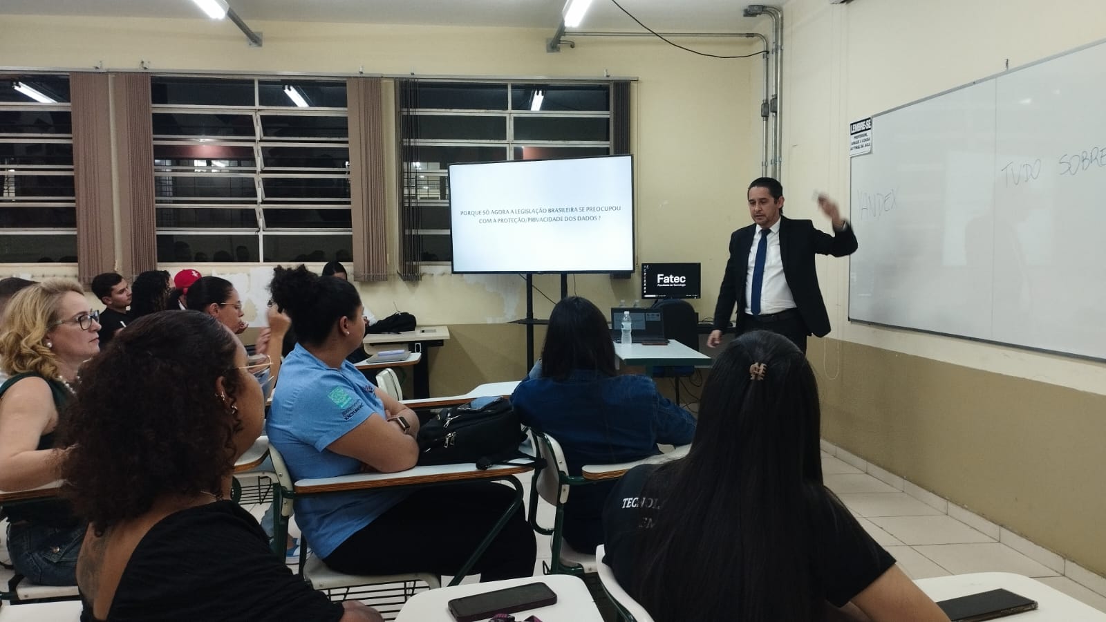 A palestra ocorreu no dia 21 de agosto de 2025. O profissional inseriu o conceito, detalhou as implicações jurídicas e explicou o que são os dados sensíveis. Destacou que esses dados só podem ser coletados com o consentimento do proprietário e que não podem ser vazados ou vendidos, cabendo, inclusive, uma ação judicial contra empresas que descumprem a lei.