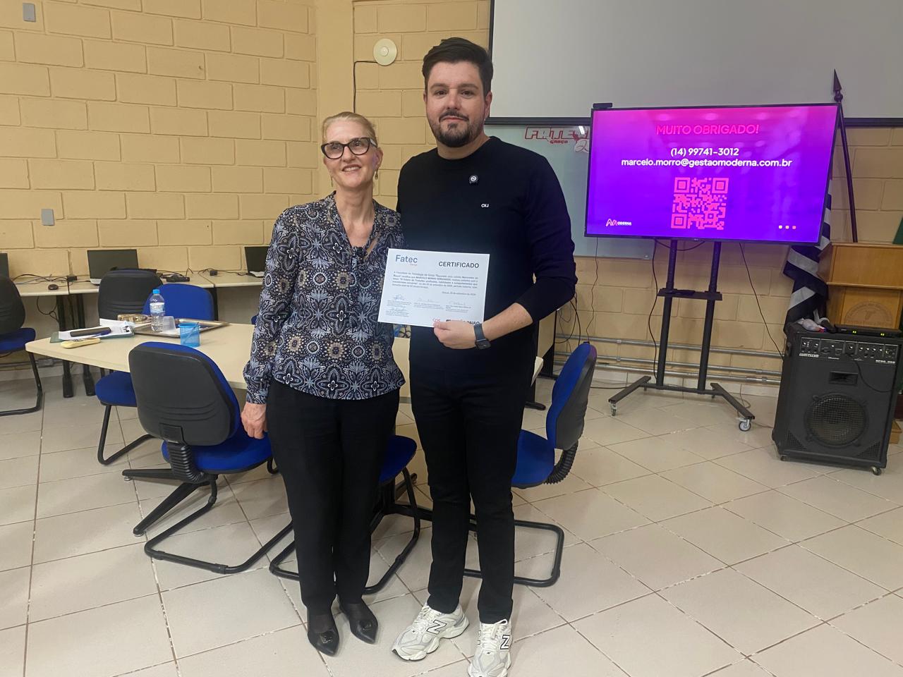 No dia 23 de setembro de 2025, a Fatec Garça promoveu uma palestra com o tema “O Futuro do Trabalho: profissões, habilidades e comportamentos que transformam carreiras”, ministrada por Marcelo Morro Fernandes, responsável pelo departamento de Recursos Humanos da empresa Fulltime. O encontro reuniu alunos e docentes interessados em compreender as mudanças do mercado de trabalho e as competências essenciais para o desenvolvimento profissional.