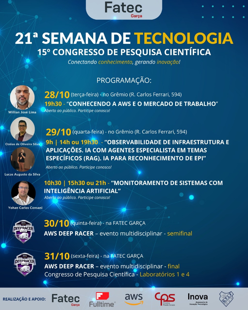 Público Alvo: Alunos da Fatec Garça e Comunidade externa em geral que tenha interesse em assuntos relacionados a tecnologia.